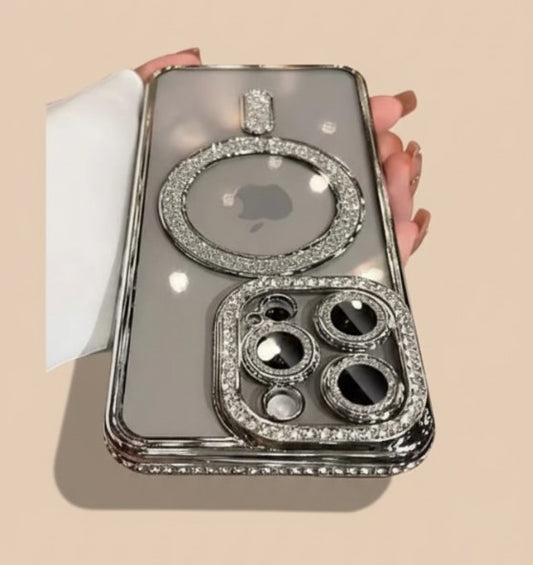 Glitter Diamond Transparent MagSafe Case for iPhone 11–17 Series